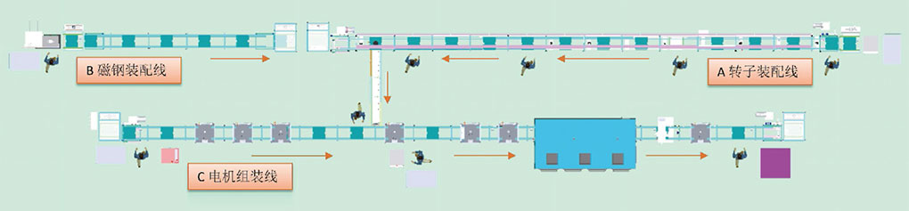 2、本線組成:定子裝配線、磁鋼裝配線、電機總裝測試線。