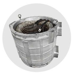 機殼上線(xiàn)→機殼加熱→定子上線→移載→熱套→壓裝→輸送(sòng)→冷卻(què)→去下道工序